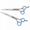 Komplet od tri škare za šišanje pasa duljine 22cm za pse srednje i velike visine pogodan je za profesionalnu i domaću upotrebu. Set uključuje ravne škare, zakrivljene škare i efilir škare. Osim škara, tu su i set za njegu (krpa i ulje za čišćenje u maloj bočici) i etui za odlaganje.